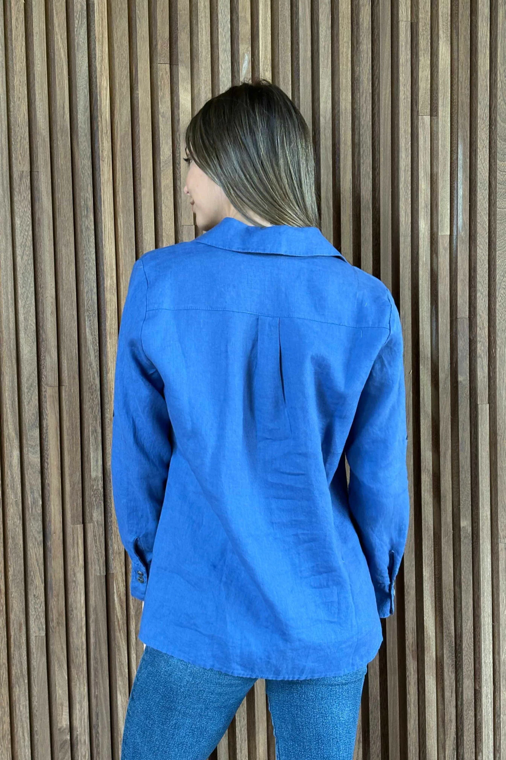 Camisa de LINO 100 % , prelavada con silicona que la hace mas suave al contacto. Manga larga con puño, canesu, tabla encontrada en la espalda y trabas para levantar la manga. Botones de nacar.